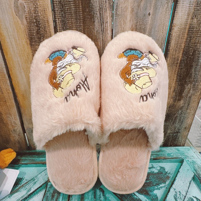 ハワイを愛する女の子マプアちゃんシリーズ♪もこもこファースリッパ【ベージュ・ブルー】