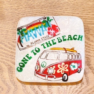 海と虹を描いたこちらはとってもハワイアンな感じで