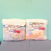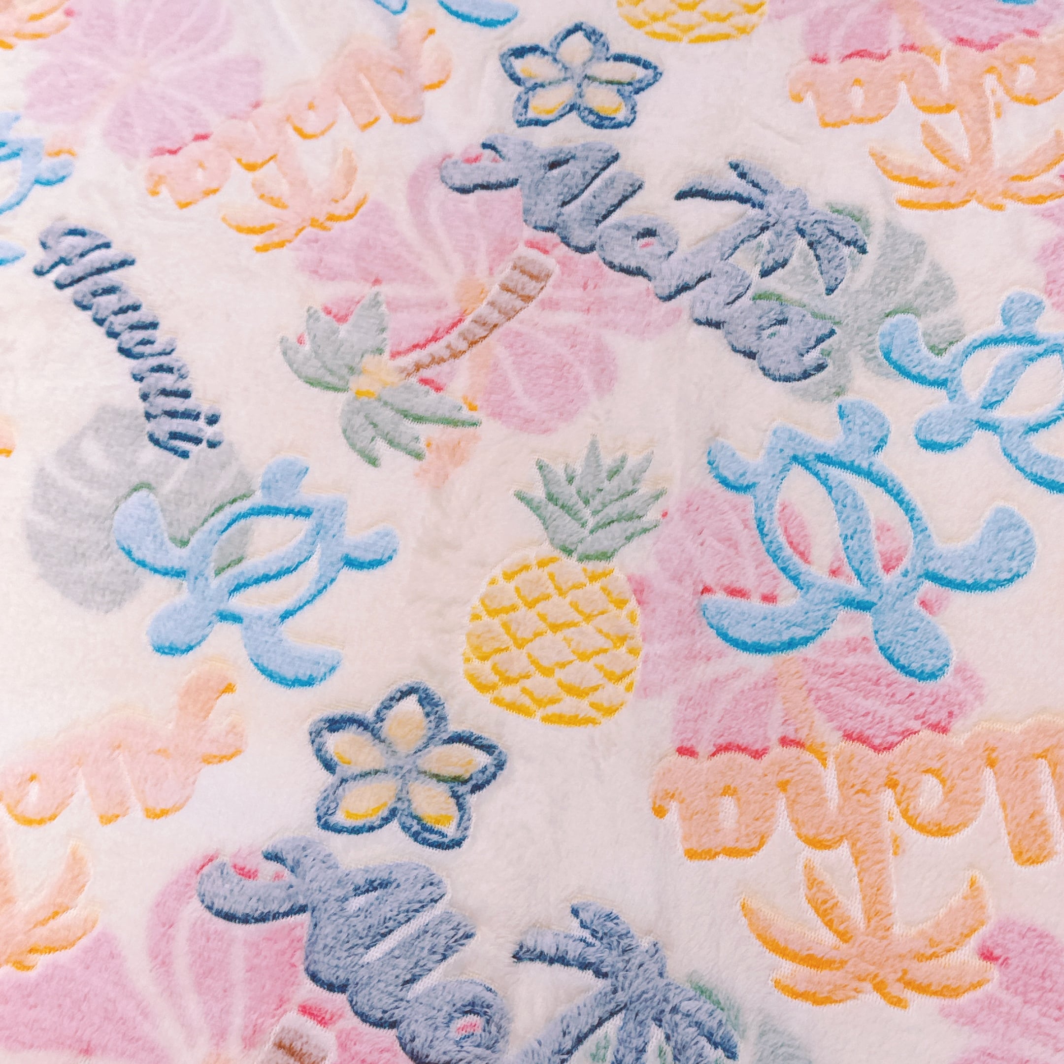 ポップなカラーリングでハワイのモチーフがぎゅっと詰まったブランケットです
