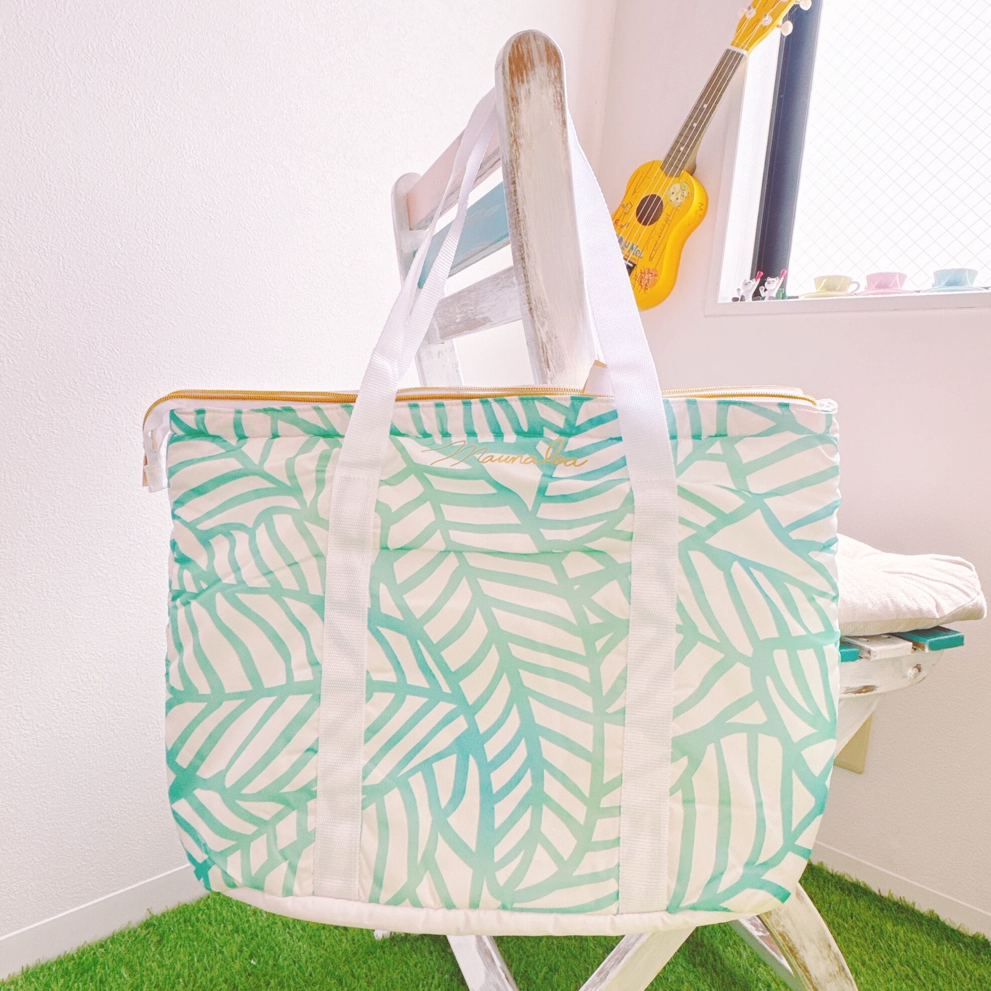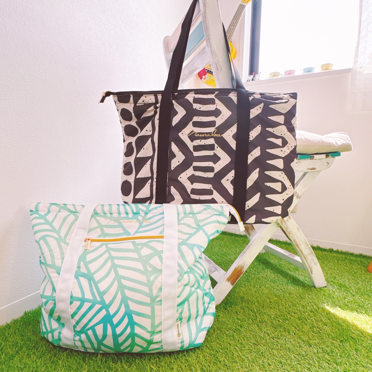 ホワイトは大胆なバナナリーフが描かれた