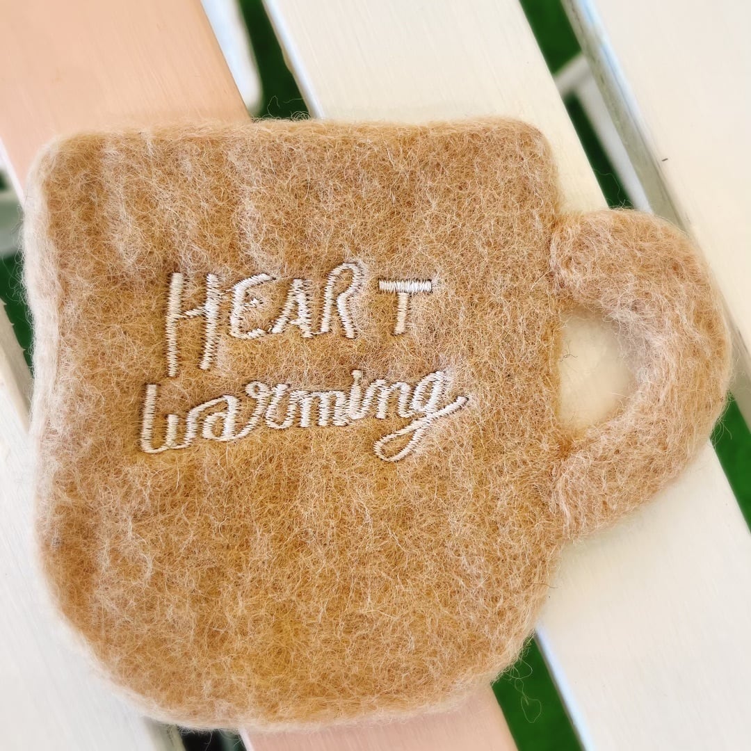 インテリアにもなじむ丁度いい色味♪HEART WARMING マグカップデザイン~フェルト生地コースター~ 【グレー】