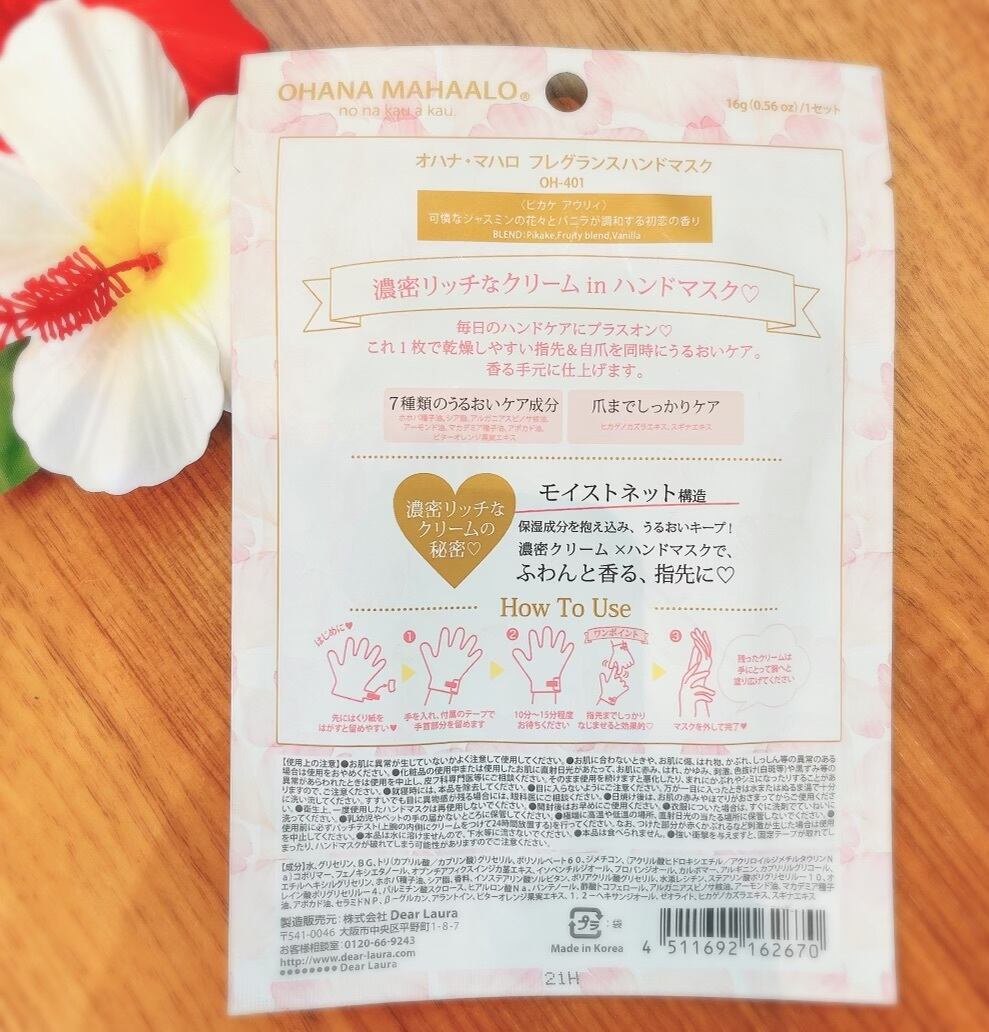 オハナ・マハロ フレグランスハンドマスク ピカケ アウリィ