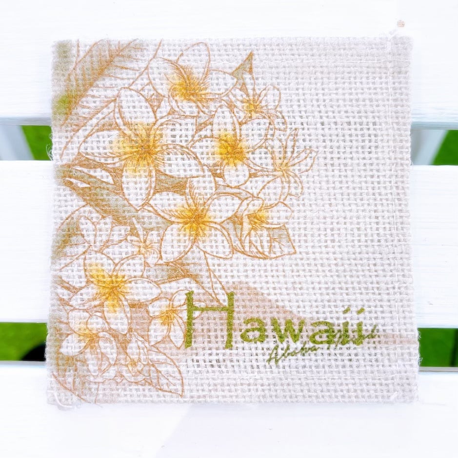 ジュート素材にHAWAIIの代表的なモチーフを描いたナチュラルな雰囲気のコースター